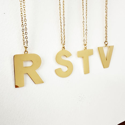 Collar Inicial Grande con Baño de Oro (Acero Inoxidable)