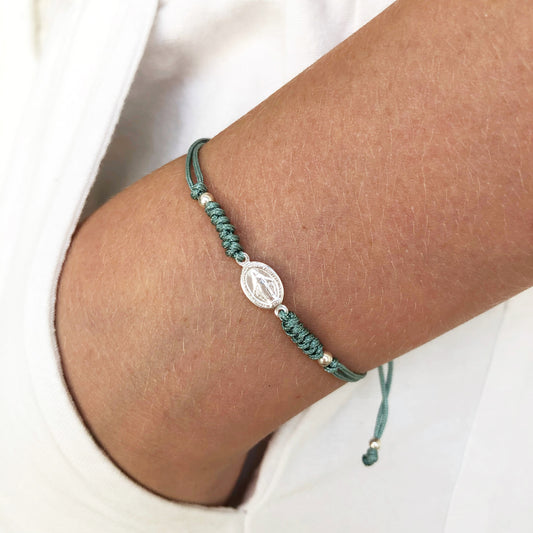 Pulsera Milagrosa de Plata y Cordón con Nudos Ajustable