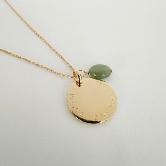 Collar Personalizado con Medalla grande con baño de Oro grabada y Piedra Aventurina