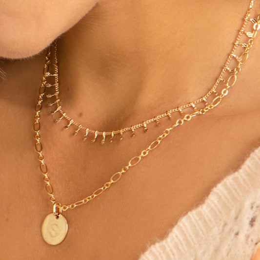 Collar Personalizado con Cadena Alargada con Baño de oro y dos medallas