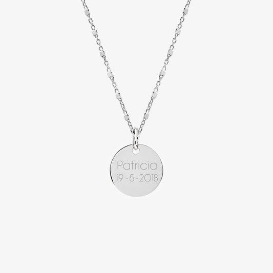 Collar Personalizado con Medalla Mediana de Plata Grabada Y Cadena de Bolitas