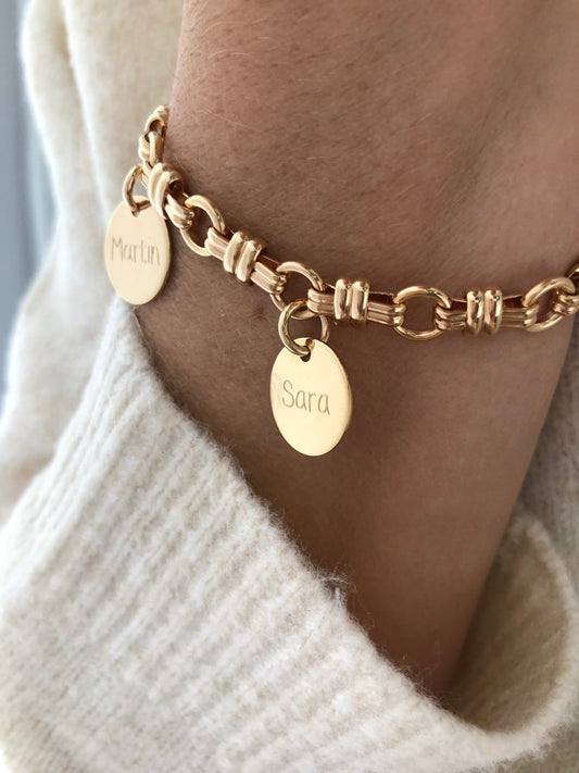 Pulsera Personalizada con Cadena Rolo con Baño de oro y dos medallas