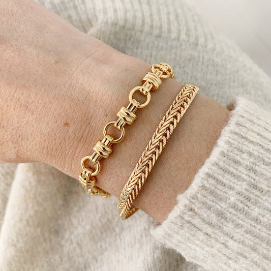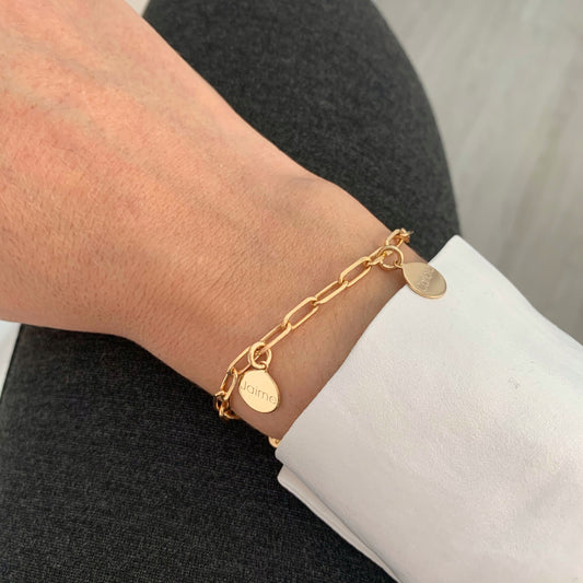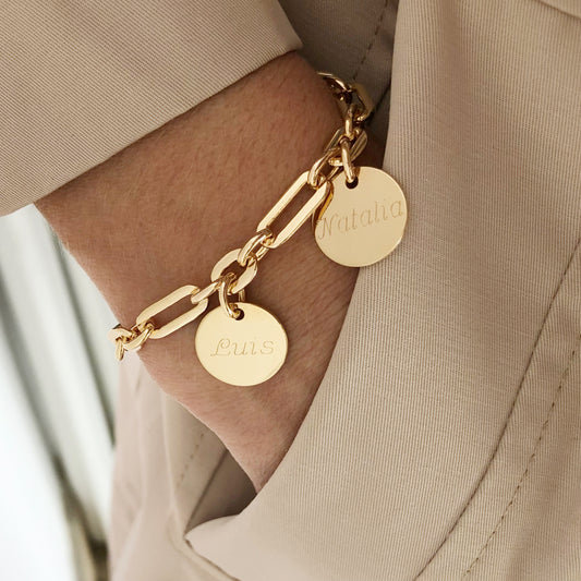 Pulsera Personalizada con Cadena de Eslabón Combinado con Baño de oro y dos medallas