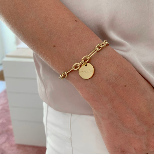 Pulsera Personalizada con Cadena Rolo con Baño de oro y una medalla