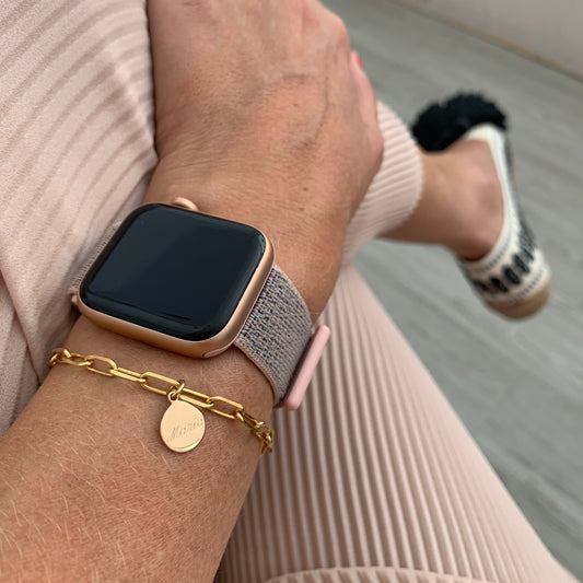 Pulsera Personalizada con Cadena Alternada con Baño de oro y una medalla