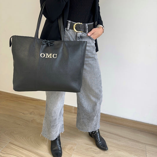 Bolso Shopping Negro de Piel Personalizado con Iniciales