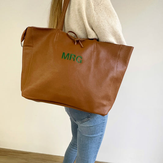 Bolso Shopping Camel de Piel Personalizado con Iniciales