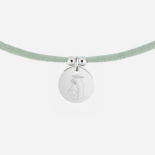 Collar Personalizado de Plata con Medalla Virgen Niña y Cordón Elástico (Varios Colores)