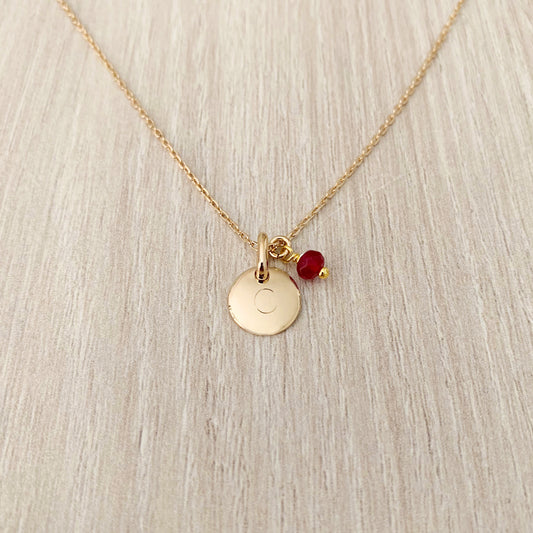 Collar Personalizado de Oro con Inicial Grabada en Medalla Pequeña Y Circonita de Color