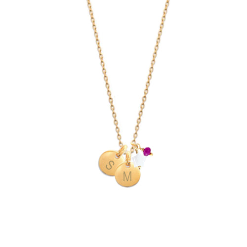 Collar Personalizado con 2 Medallas Pequeñas con Baño de Oro Y Piedras
