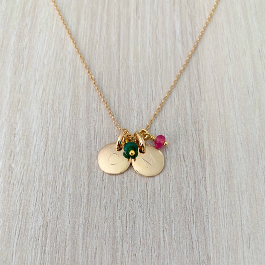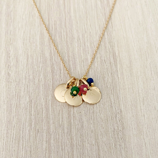 Collar Personalizado con Cadena de Piedras Semipreciosas de colores y Medalla con Inicial con Baño de Oro
