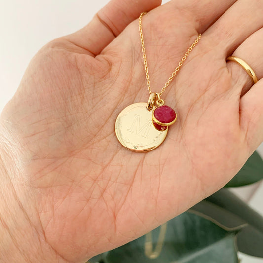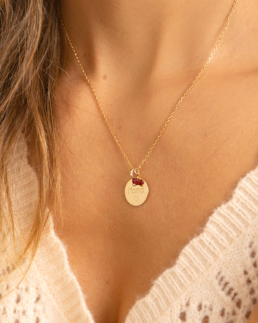 Collar Personalizado con Medalla grande con baño de Oro grabada y Piedra Semipreciosa