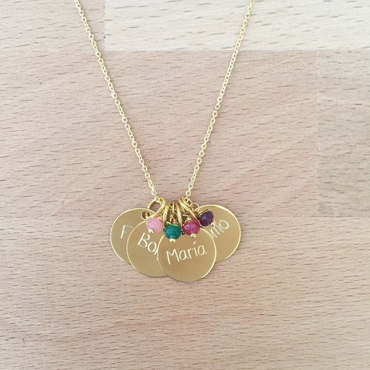 Collar Personalizado con cuatro Medallas Medianas con baño de Oro grabadas y Piedras