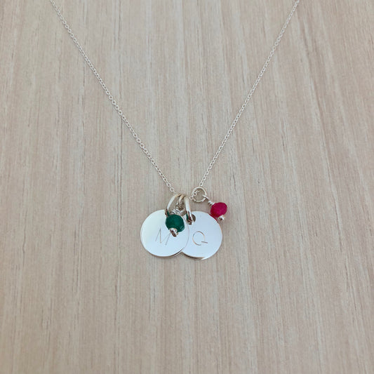 Collar Personalizado con 2 Medallas Pequeñas de Plata Y Piedras