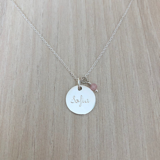 Collar Personalizado con Medalla Pequeña de Plata Y Piedra