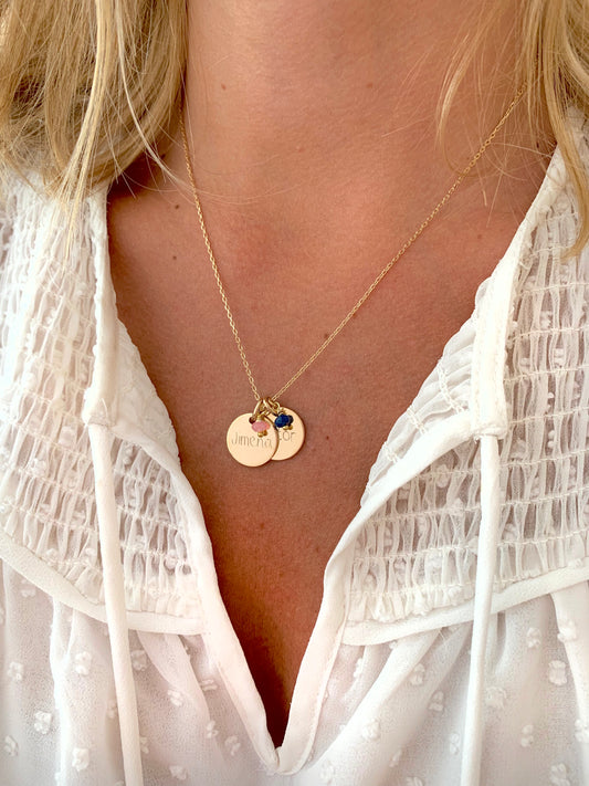 Collar Personalizado con 2 Medallas Medianas de Plata grabadas y Piedras