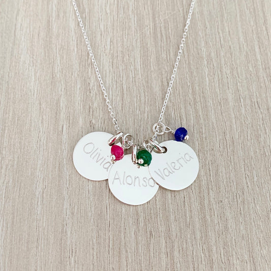Collar Personalizado con 3 Medallas Medianas de Plata grabadas y Piedras