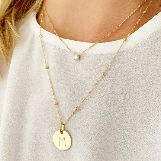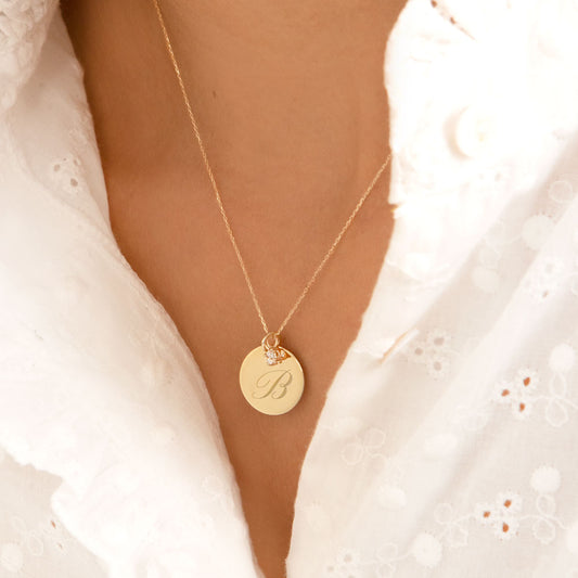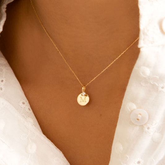 Collar Personalizado de Oro con Inicial Grabada en Medalla Pequeña Y Circonita