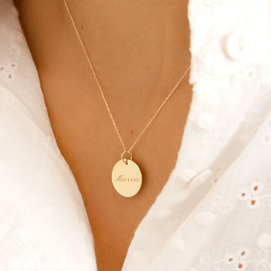 Collar Personalizado de Oro con Grabado en Medalla Grande
