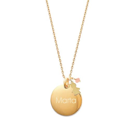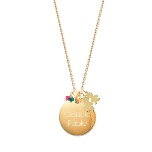 Collar Personalizado con Medalla grande grabada y Medalla Niña con baño de Oro Y Piedra