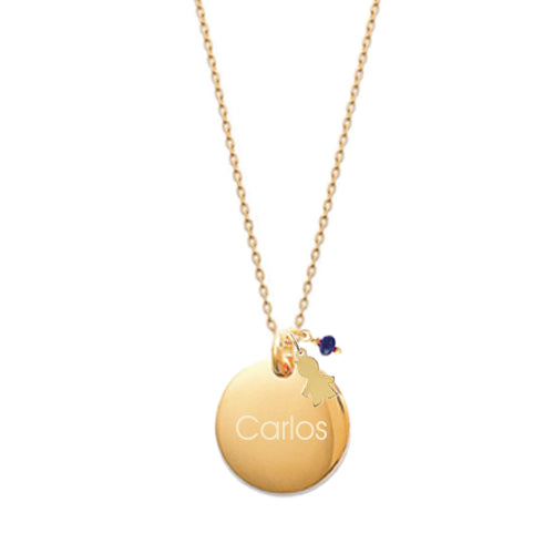 Collar Personalizado con Medalla grande grabada y Medalla Niño con baño de Oro Y Piedra
