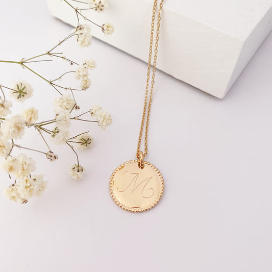 Collar con Medalla contorneada con baño de Oro Personalizado con Inicial