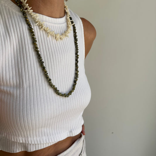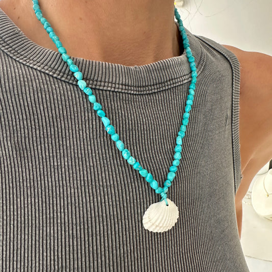 Collar Largo Caracolas Blancas y Colgante Concha Blanca