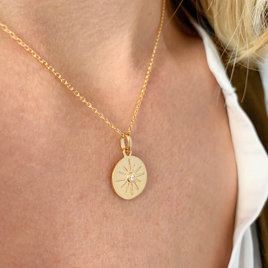 Collar Medallón Relicario con Circonitas con Baño de Oro