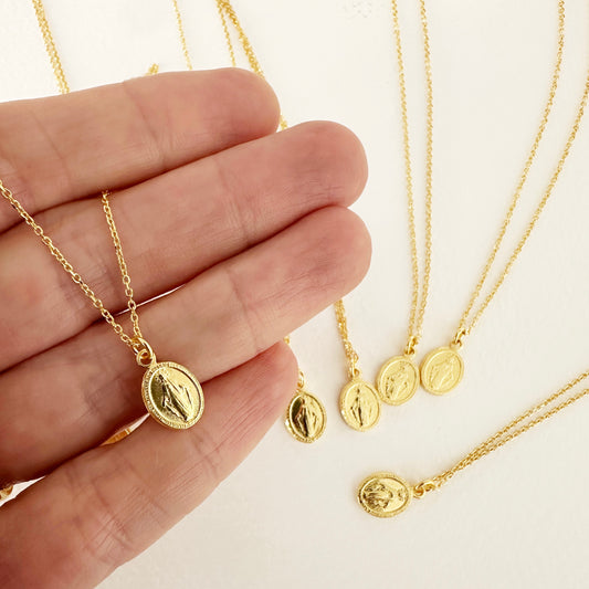 Collar Virgen Milagrosa con Baño de Oro