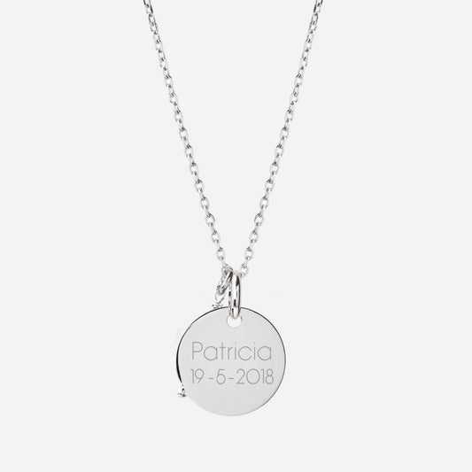 Collar con Medalla de Plata con Virgen Niña personalizable con fecha y nombre
