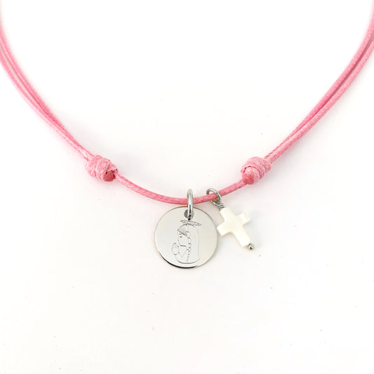 Collar Cordón con Medalla de Plata con Virgen Niña y Cruz de Nácar personalizable