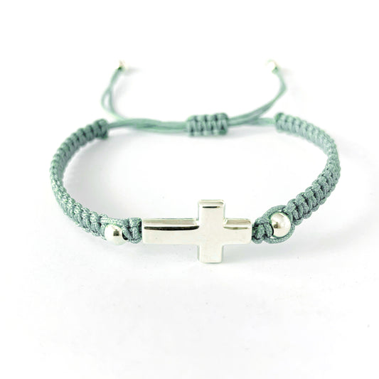Pulsera Cruz Gruesa de Plata y Macramé para Niña