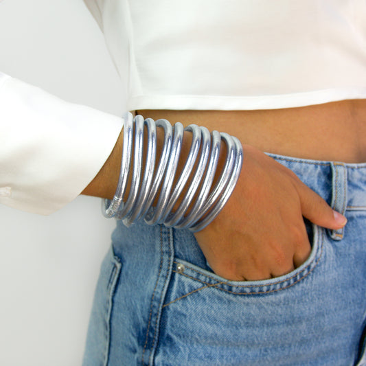 Pulsera Aro Rígido Personalizado de Plata con una medalla