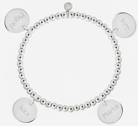 Pulsera Personalizada con Bolitas de Plata con cuatro medallas