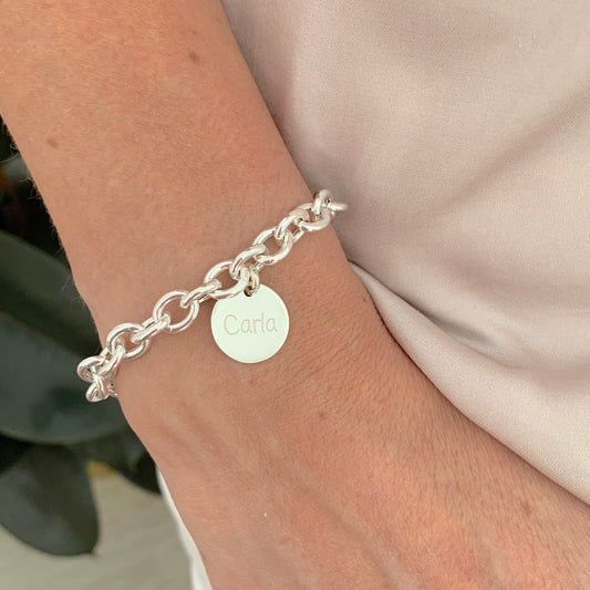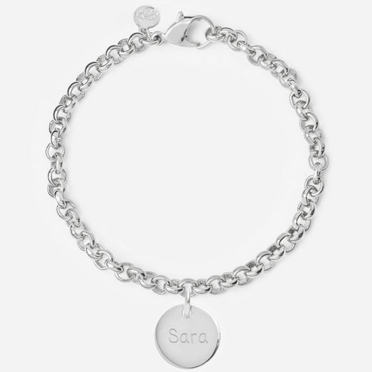 Pulsera Personalizada con Cadena Rolo de Plata con una medalla