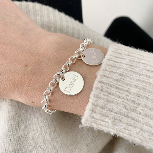 Pulsera Personalizada con Cadena Rolo de Plata con dos medallas