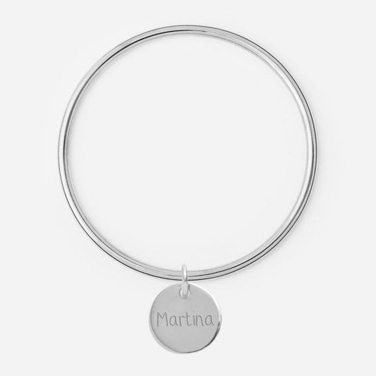 Pulsera Aro Rígido Personalizado de Plata con una medalla