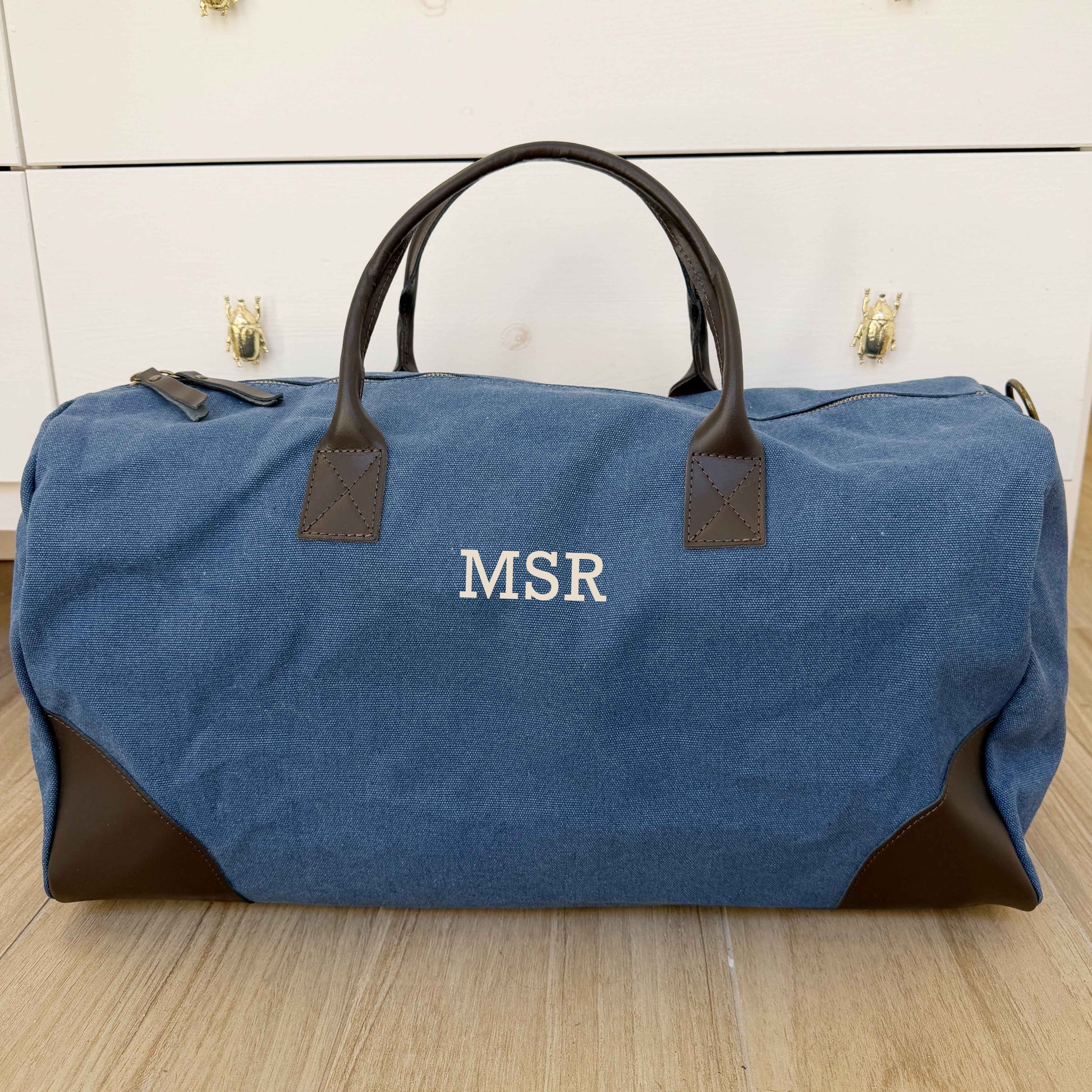 Bolsa de Fin de Semana Weekend Bag de Lona Azul y Piel