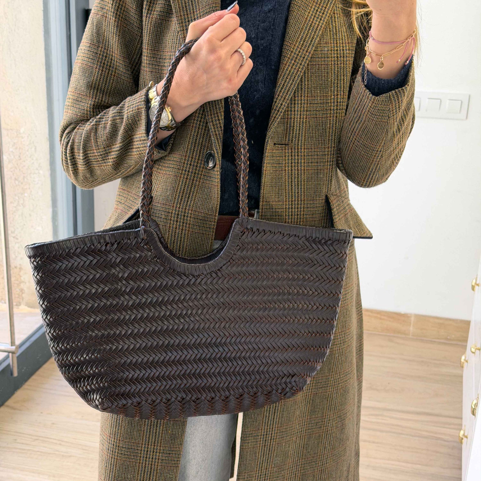 Bolso Capazo Marrón Chocolate de Piel Trenzada