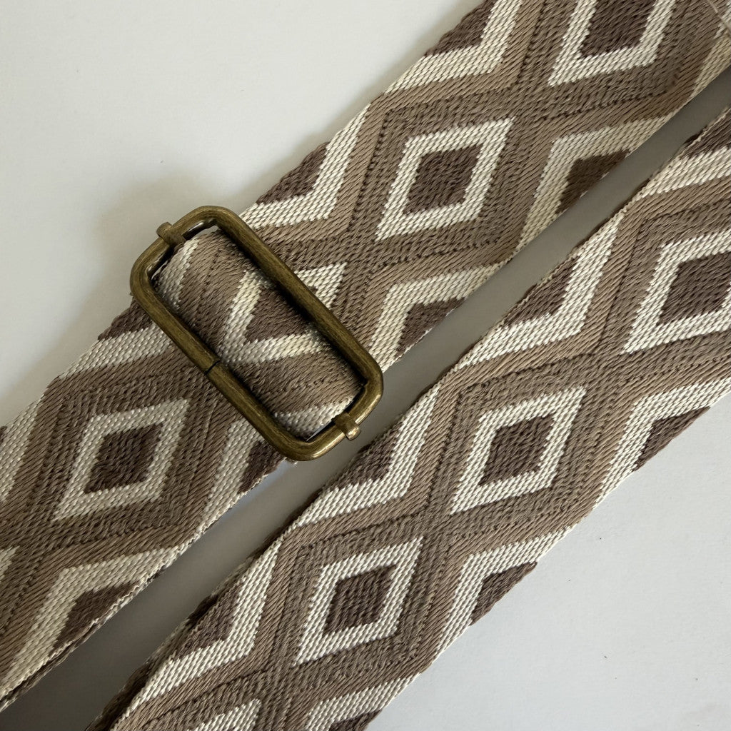 - Incluye bandolera sencilla de algodón en color marrón de longitud regulable
