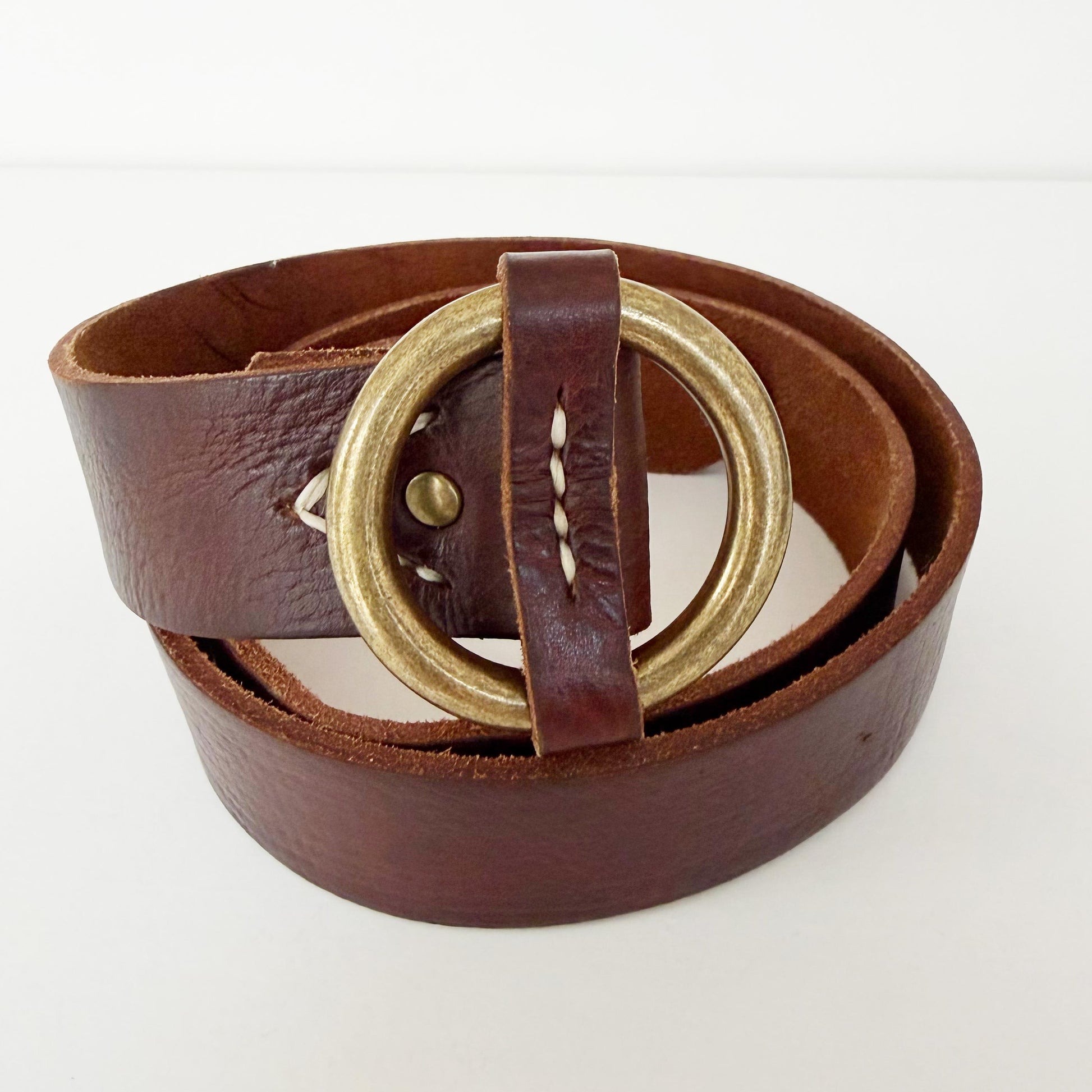 Cinturón de Cuero Marrón con Hebilla Circular Dodada