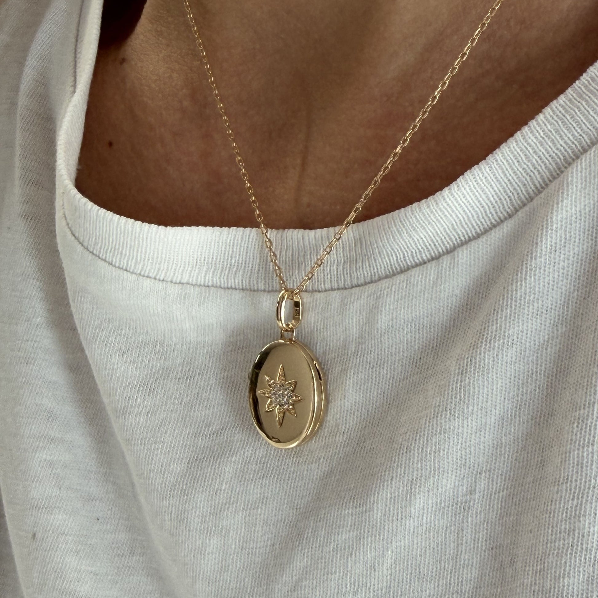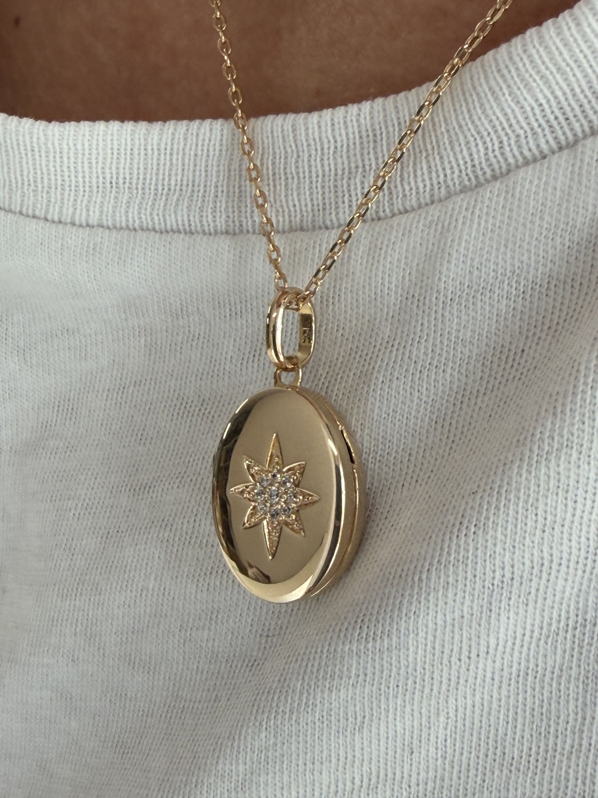 Collar Medallón Relicario con Circonitas con Baño de Oro