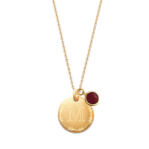 Collar Personalizado con Medalla grande con baño de Oro grabada y Piedra Semipreciosa