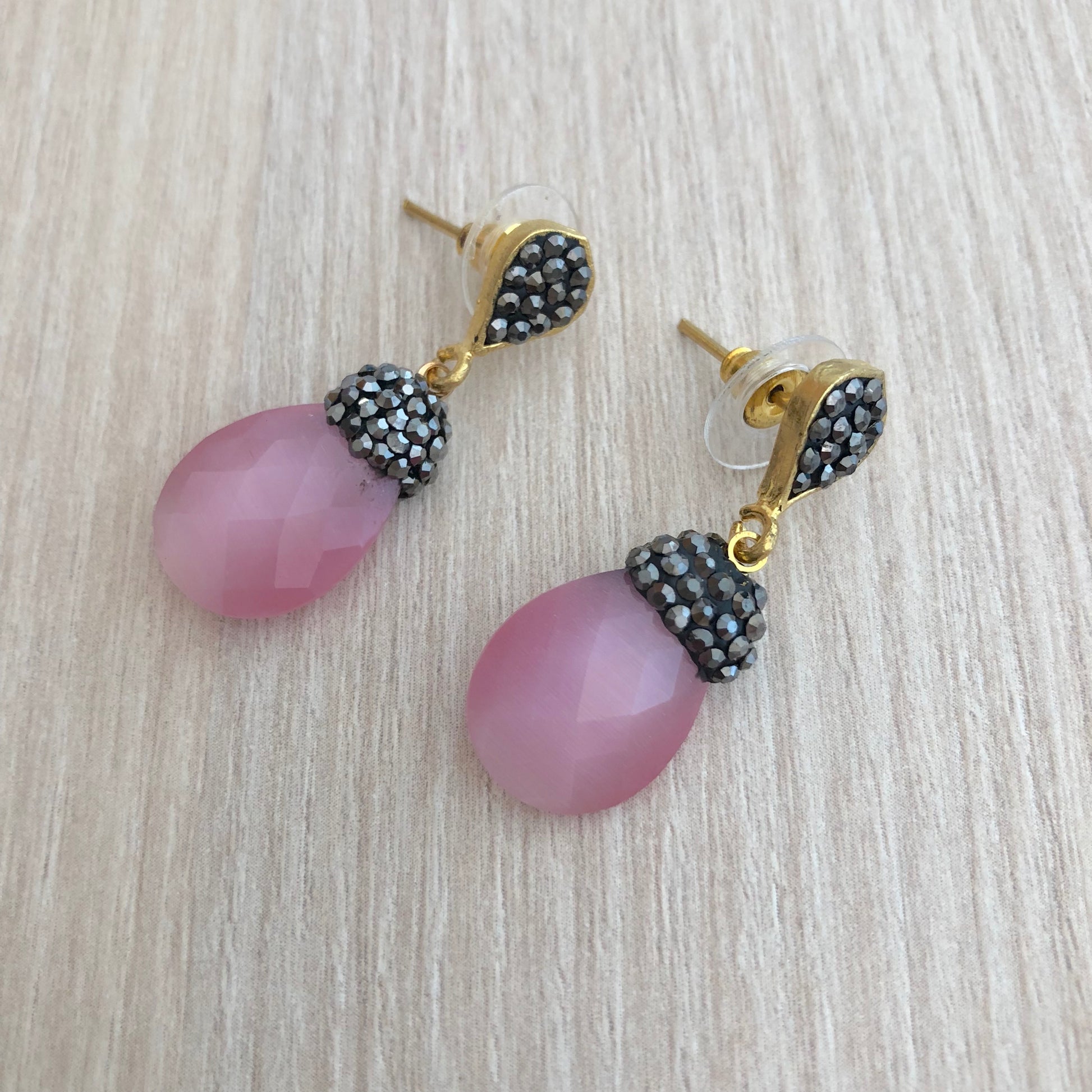 Pendientes Bellota con Piedra Semipreciosa Rosa y cristales Swarovski